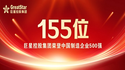 巨星控股集团荣登中国制造业企业500强第155位